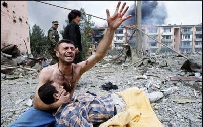 ცნობილი ქართველთმოძულის, მიხეილ ლეონტიევის რედაქტორობით მომუშავე საიტ ”odnako.org”-ზე გამოქვეყნდა პამფლეტი სახელწოდებით: ”მაიდნის საინფორმაციო ომის შესახებ: დრამისა და კომედიის უკრაინულ-ქართული თეატრი”. წერილის ავტორი დიმიტრი სტეშინი აღწერს კიევში მიმდინარე მოვლენებს და ბრალს სდებს ჟურნალისტებსა და მიმომხილველებს მათ არასწორ გაშუქებაში. თავისი ”მხილების” მახვილს ის მიმართავს ამერიკული სააგენტო ”რეიტერის” კორესპონდენტის - გლებ გარანიჩის მისამართით და მის ფოტოსურათს - იმის ამსახველს, თუ როგორ უსწორდებოდა: სისხლს ადენდა და ასახიჩრებდა ჟურნალისტებს უკრაინული სპეცრაზმი - უწოდებს ნაყალბევს; ხოლო მსგავსი სიყალბის ნიმუშად მოჰყავს იმავე ავტორის გორში გადაღებული ფოტოები 2008 წელს: ”ამ კაცმა საკუთარი ტალანტით გადაარჩინა საქართველო ოკუპაციას, - წერს მიმოხილვის ავტორი - კრიტიკული მომენტი იდგა: დაიწყო ქართული არმიის გამოძევება ცხინვალიდან და დაისახა რუსული არმიის თბილისზე მარშის არაილუზორული ვარაუდი... დასავლეთის ხელისუფლებები დუმდნენ, რადგან არ იცოდნენ, როგორ უნდა მოეხდინათ რეაგირება...და აი, საინფორამციო საშუალებებში გამოჩნდა შოკის მომგვრელი კადრები, როგორ ბომბავენ რუსული თვითმფრინავები ქართულ ქალაქებს”. ნათქვამის დასადასტურებლად ავტორს მოჰყავს ფრაგმენტები ”newsland.com” -ზე 2008 წლის 13 აგვისტოს (http://newsland.com/news/detail/id/286512/ ) გამოქვეყნებული ფოტოჟურნალისტის გამოგონილი ინტერვიუდან ”ეხო მოსკვის” რედაქტორ ვენედიქტოვთან, სადაც ის ვითომცდა ჰყვება, როგორ დადგეს სცენები გორში საომარი მოქმედების გადასაღებად და ”ავიწყდება”, თუ როგორ უარყო მოგვიანებით ”ეხო მოსკვის” რედაქტორმა ”ria.ru”-ზე ამ ინტერვიუს რეალობა. (http://ria.ru/osetia/20080813/150349961.html#13870201832753&message=resize&relto=register&action=addClass&value=registration). ლეონტიევის ” odnako.org”--ი რუსეთის ინტერნეტ-მკითხველს შთაუნერგავს, რომ გასისხლიანებული ჟურნალისტის ფოტო კიევის ”ევრომაიდნიდან” ისეთივე ნაყალბევია, როგორიც იყო გორში გადაღებული ფოტო, სადაც ძმის სიკვდილით გამოწვეული რაზმაძეების ოჯახის ტრაგედიაა ასახული. აი, ასეთი სიმართლით ცხოვრობს დღეს რუსეთი, ამ სიმართლით აცხოვრებს საკუთარ მოსახლეობას და ამ სიმართლით სურს ახალი ”საბაჟო კავშირისა” და ”ევრაზიული კავშირის” შექმნა. მას, სამწუხაროდ, ჰყავს ერთგული ყურმოჭრილი მონები უკრაინაში, რომლებიც დღეს თავისუფლების მოედნის მიტინგის პარალელურად მართავდნენ ალტერნატიულ მიტინგს კიევის ”ევროპის” მოედანზე. მაგრამ უკრაინაში ჰყავდეს, რა გასაკვირია, როდესაც თვით რუსეთისაგან ოკუპირებულ და იავარქმნილ საქართველოშიც უ