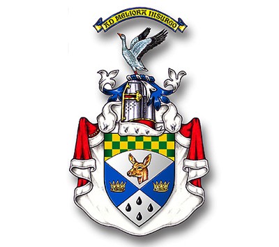 | | შოტლანდიურ გერბებზე გერბის (ნაცრისფერი ბატის) ზემოთ განთავსებულია დევიზი (მე უფრო დიდი საქმეებისკენ ვისწრაფვი). ოქროთი მორთული მუზარადი ყარყუმით მოპირკეთებული ხავერდის შოპოს ზემოთაა განთავსებული. ფარის უკან 5 სფერული ოქროს ღილაკით მორთული საზეიმო სამოსია. ფარზე გამოსახული მანტია მინიშნებაა კილმარნოკელ ბოიდზე, მის პირველ მფლობელზე. ირმის თავი ბარონის დედისეული ოჯახის (ჰინდმენი) სიმბოლოა. ორი უძველესი გვირგვინი ბარონის ისტორიულ მნიშვნელობას უსვამს ხაზს, ხოლო ზეთის წვეთი წარმოგვიდგენს მის პროფესიულ კარიერას ნავთობის ინდუსტრიაში. ბარონი პირველია ეირის გვარიდან, რომელსაც შოტლანდიაში ლორდ ლიონმა გერბი მიანიჭა. |