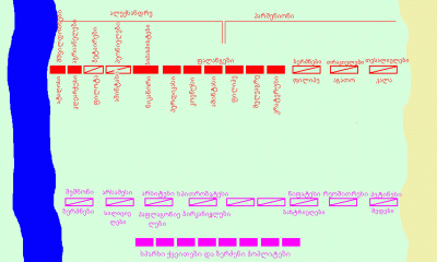 | | მოწინააღმდეგეთა განლაგება ბრძოლის ველზე | 0 კავალერისტით.