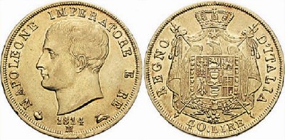 | | ნაპოლეონის 40 ლირა - ამ მონეტაზე პირველად გამოჩნდა სიტყვები : „იტალიის სამეფო“. | ეთრი და წითელი. იოლი შესამჩნევია, რომ ეს დროშა ძალიან ჰგავს ფრანგულ დროშას - ოღონდ ცისფერია მწვანეთი შეცვლილი. ასე აჩუქა ნაპოლეონმა იტალიას სახელმწიფო და მთავარი სიმბოლო. მაგრამ ქვეყნის გამუდმებით მართვა იტალიის პირველ მეფეს არ შეეძლო. ის ხომ იმავდროულად საფრანგეთის იმპერატორი იყო. ამიტომაც სახელმწიფოს მეთაურის პასუხისმგებლობა ვიცე-ხელმწიფის ტიტულით დააკისრა ევგენი ბოგარნეს - საკუთარი ცოლის, ჟოზეფინას ვაჟს პირველი ქორწინებიდან. ნაპოლეონი ხომ საერთოდაც ოცნებობდა გაერთიანებულ ევროპაზე, სადაც მმართველები იქნებოდნენ ის, მისი ნათესავები და მისი გენერლები. მასალა პიცისათვის. მაგრამ ევროპის გაერთიანება არ გამოვიდა. იგი გაიყინა რუსეთის თოვლში ზუსტად შვიდი წლის შემდეგ, იქ, საითკენაც მოუხდათ მსვლელობა იმპერატორის მიერ შექმნილ პირველ „იტალიელებსაც“: 27 ათასი კაცი იღებდა მოსკოვზე ლაშქრობაში მონაწილეობას, საიდანაც დაბრუნდა მხოლოდ ყოველი ოცდამეშვიდე - მხოლოდ ათასი დატილიანებული სასწაულებრივად გადარჩენილი გმირი - გენეტიკური მასალა გამრავლებისათვის, რომელმაც გამოცდას გაუძლო ბუნებრივი გადარჩევის გზით. „არ შეიძლება უარვყოთ, რომ ნაპოლეონი სიმპათიას გამოხატავდა იტალიელთა მიმართ იმ ბუნდოვანი რასობრივი ერთობის გამო, რომლის მოქმედებაც განსაკუთრებული ძალით ვლინდებოდა ყოველჟამს, როდესაც ის იმყოფებოდა მათ ქვეყანაში და უშუალო ურთიერთობაში შედიოდა მათთან“ - წერდნენ „XIX საუკუნის ისტორიაში“ ფრანგი პროფესორები ლავისი და რამბო. ან როგორ შეიძლებოდა ნაპოლეონს არ გამოეხატა სიმპათია? აკი მან გამოიგონა იტალიელები! თუმცა, იტალიის პირველი მეფე არ უარყოფდა ნახევარკუნძულზე სხვა ხალხების არსებობას. პიემონტელებზე ახლო დაკვირვებისას მან გადაწყვიტა, რომ ესენი იყვნენ არა იტალიელები, არამედ ფრანგები და მიუერთა ისინი საფრანგეთს უშუალოდ - პიემონტელთა ენა დღესაც კი გაცილებით მსგავსია ფრანგულის, ვიდრე იტალიურის. სამხრეთში კი მან დატოვა ნეაპოლიტანური სამეფო და იქ მეფედ დასვა თავისი მეგობარი მიურატი - უბრალო მიკიტნის შვილი ტულუზიდან: ჩათვალა, რომ ამ მაფიოზებისათვის გაცილებით ორგანული იქნებოდა მისი ყოლა, თვინიერ ბურბონების დინასტიის კანონიერი მეფის - ფერდინანდისა. მიურატი დაჯდა ტახტზე, ფერდინანდი გაიქცა სიცილიაში. იქ მას ჰქონდა კიდევ ერთი სიცილიური სამეფო, სადაც ტრაფალგარში განადგურებული ფლოტის არარსებობის გამო, იმპერატორი ვერ მიაწვდენდა ხელს. მარიონეტულმა ნაპ