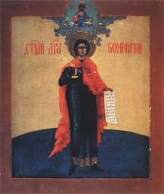 |    წმიდა მოწამე ბონიფანტე მდიდარი და ახალგაზრდა რომაელი ქალის, აგლაიდას მონა იყო და ქალბატონთან სასიყვარულო კავშირი ჰქონდა. შემდეგ აგლაიდა ქრისტიანობაზე მოექცა. მან ვერ შეძლო საყვარელთან კავშირის გაწყვეტა, მაგრამ ყოველნაირად ცდილობდა, ეს ცოდვა კეთილი საქმეებით გადაეფარა და ხშირად ეხმარებოდა გაჭირვებაში მყოფ ქრისტიანებს. ერთხელ მან გაიგო, რომ აღმოსავლეთში ქრისტიანების სასტიკი დევნა დაიწყო. თავისთან მოიხმო ბონიფანტე და აღმოსავლეთში წასვლა და იქიდან რომელიმე მოწამის სხეულის ჩამოსვენება თხოვა. აგლაიდა იმედოვნებდა, რომ ქრისტეს მოწამე შეეწეოდა მას ცოდვის დაძლევაში და უშუამდგომლებდა ღვთის წინაშე. ამის გაგონებაზე ბონიფანტემ სიცილით მიუგო: „ქალბატონო, თუ წმიდა ნაწილები ვერ ვიპოვე და თავად ვეწამე ქრისტესთვის, პატივით მიიღებ ჩემს სხეულს?“ აგლაიდა სერიოზულად მოეკიდა ნათქვამს და გაკიცხა იგი იმის გამო, რომ წმიდა საქმეზე გამგზავრების წინ თავს ლაზღანდარობის ნებას აძლევდა. ბონიფანტეც დააფიქრა მისმა ნათქვამმა. კილიკიაში, ქალაქ ტარსოსში ჩასულმა ბონიფანტემ თანამგზავრები სასტუმროში დატოვა, თავად კი ქალაქის მოედანს მიაშურა, სადაც ქრისტიანებს აწამებდნენ. ნეტარმა საკუთარი თვალებით იხილა უფლის რჩეულთა სასტიკი ტანჯვა და ღვთის მადლით გაბრწყინებული მათი სახეები. თანაგრძნობით აღსავსე ბონიფანტე მოწაფეებს ევედრებოდა, ელოცათ, რომ ისიც ამგვარივე ხვედრის ღირსი გამხდარიყო. მაშინ მსაჯულმა ბონიფანტეს ვინაობა ჰკითხა. „მე ქრისტიანი ვარ!“ - გაბედულად უპასუხა ნეტარმა, შემდეგ კი კერპებისათვის მსხვერპლის შეწირვაზე უარი განაცხადა. ამისთვის მას იქვე დაუწყეს წამება: ისე გვემეს, რომ ხორცი ნაფლეთებად ჩამოცვივდა და ძვლები გაუშიშვლდა, ფრჩხილებქვეშ ნემსებით ჩხვლეტდნენ, ბოლოს გამლღვალი კალაც ჩაასხეს ყელში, მაგრამ, ღვთის ნებით, უვნებლად გადარჩა. სამსჯავრო